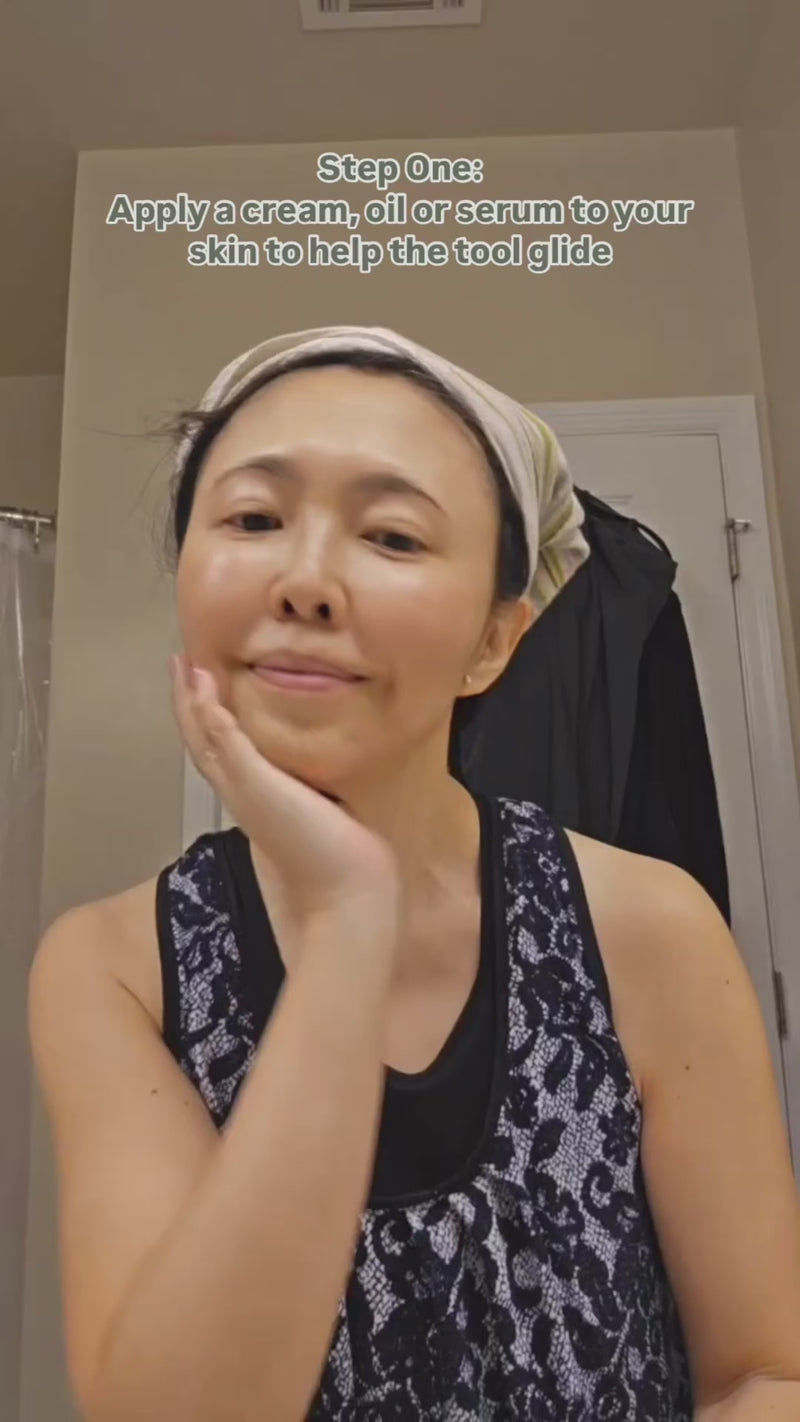 Prep skin with your favorite face oil or moisturizer. Use our easy-to-use Gua Sha Gesture Guide and follow along with the instructions.