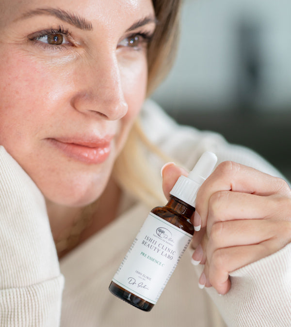 Pre Essence C utilizes "ascorbate glycerin" as its primary active ingredient in order to reduce negative effects from environmental stressors. As a dermatological clinic, Ishii has carefully selected 11 types of plant extracts that provide a smooth complexion. The beauty solution in its essence is mildly acidic, so it won't irritate the skin. Inositol helps the skin maintain nutrients and keeps skin healthy, while Pre Essence C acts as a hydrating serum that can be used before moisturizer.