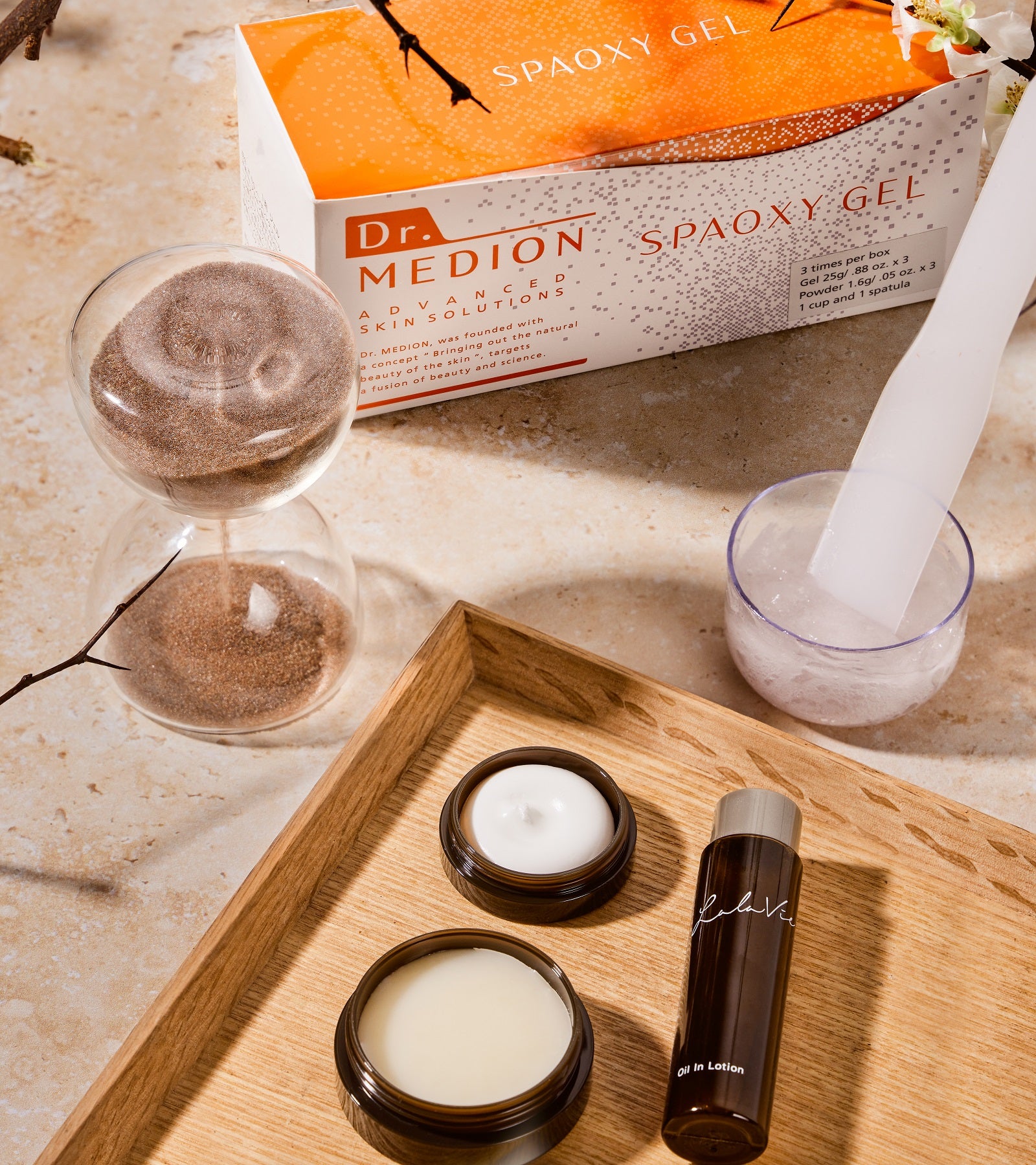 Our best-selling bundle allows you to experience daily skin care and at-home spa care for special occasions. The Lala Vie 7-day Trial Set includes three intensive moisturizing and aging care products designed to provide essential moisture that combats dryness to promote smoother, firmer, and more youthful-looking skin. For your special occasions, Dr. MEDION Spaoxy Gel, a spa-quality facial mask brings out the natural ability of the skin for a captivatingly taut and smooth appearance.